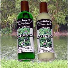 RAINFOREST THERAPY Shampoo & Conditioner for Hair Growth and Volume.Daily formula for Men & Women.An all natural formula infused with Amor Crescido from the Amazon Rainforest that will gently nourish, hydrate your scalp and hair follicles setting the base for long-term healthy hair and scalp.What is Amor Crescido? Amor Crescido Plant Extract (Portulaca Pilosa), extremely rich in mucilage, vitamins A, B1, B2, & C, has been used by Indigenous communities for centuries throughout the Brazilian Amazon Rainforest for the treatment of thinning hair. With regular use, Amor Crescido has demonstrated the ability to stimulate hair-growth and volume by nourishing the scalp with its plant nutrients.What is Sea Kelp? Sea Kelp Extract, rich in mucilage, increases circulation to the capillaries in the skins tissues bringing up much needed nutrients and oxygen deep within the scalp and hair follicles while flushing out toxins. It is also one of natures most shine-enhancing ingredients, for a natural and healthy shine. Bio-marine sea vegetation offers a natural and intense form of nourishment.Benefits Include:Gentle, natural, botanically infused formula.Made with no harsh chemicals and plastics.Will not weigh down hear; its nice and light.Stops hair loss (90% success rate).Repairs damaged hair.Minimizes dandruff.Wonderful Mild Herbal Fragrance