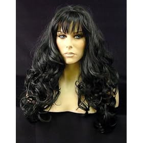 This is a long wavy/curly style synthetic wig with a very natural look and feel. The color shown in the photo is color #1 which is a jet black. We have not extensively styled the wig so you should be able to duplicate the look by shaking it out really well from the package and then do minimal finger styling. It is stunning and one of our best sellers.